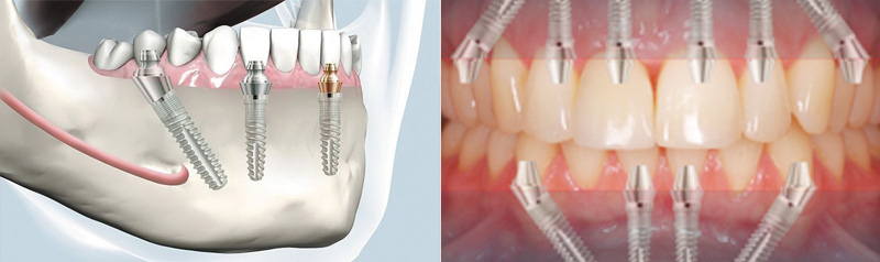 Thanks to angular placement of the implants, the local bone can be made optimal use of and perfect biomechanical support of the restoration is achieved.